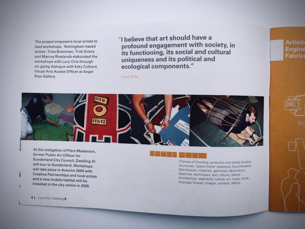 Co-ordinating the development and delivery of participatory creative workshops in Nottingham to inform the development of a public artwork by artist Lucy Orta.
