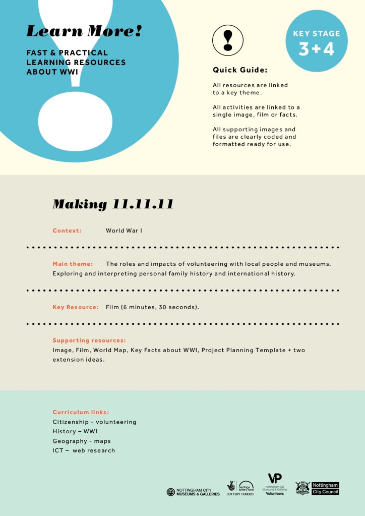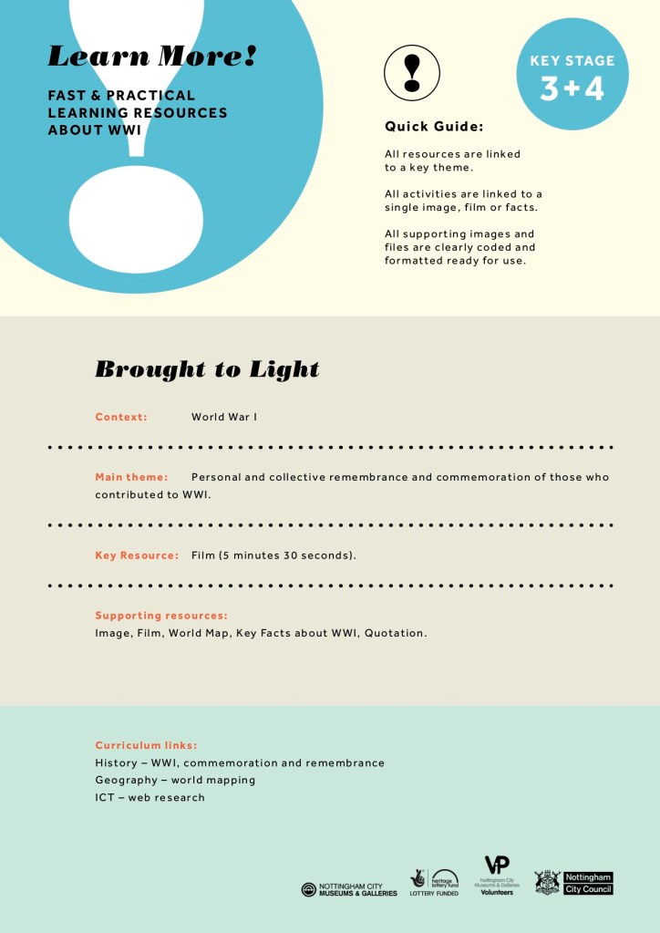 Activities relating directly to Nottingham residents’ memories of and connections to WWI.