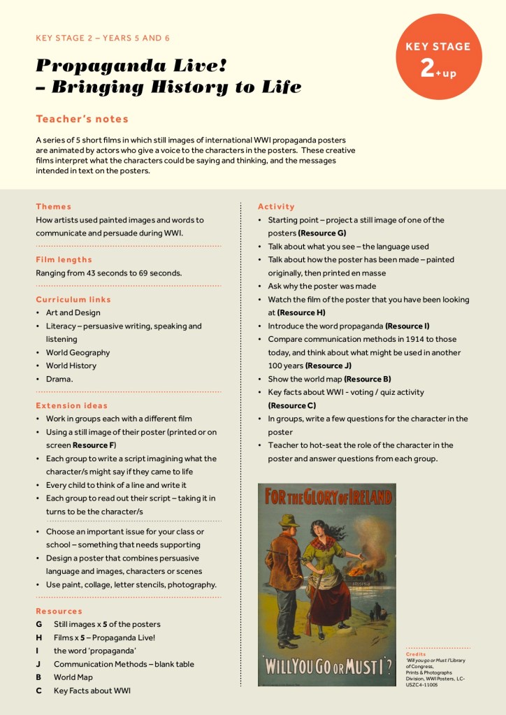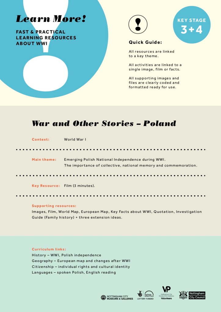 Free digital learning resources for Key Stages 2, 3 and 4, based on creative short films about WWI from the perspectives of local people from outside the UK. Film themes include remembrance, propaganda and the development of Poland.