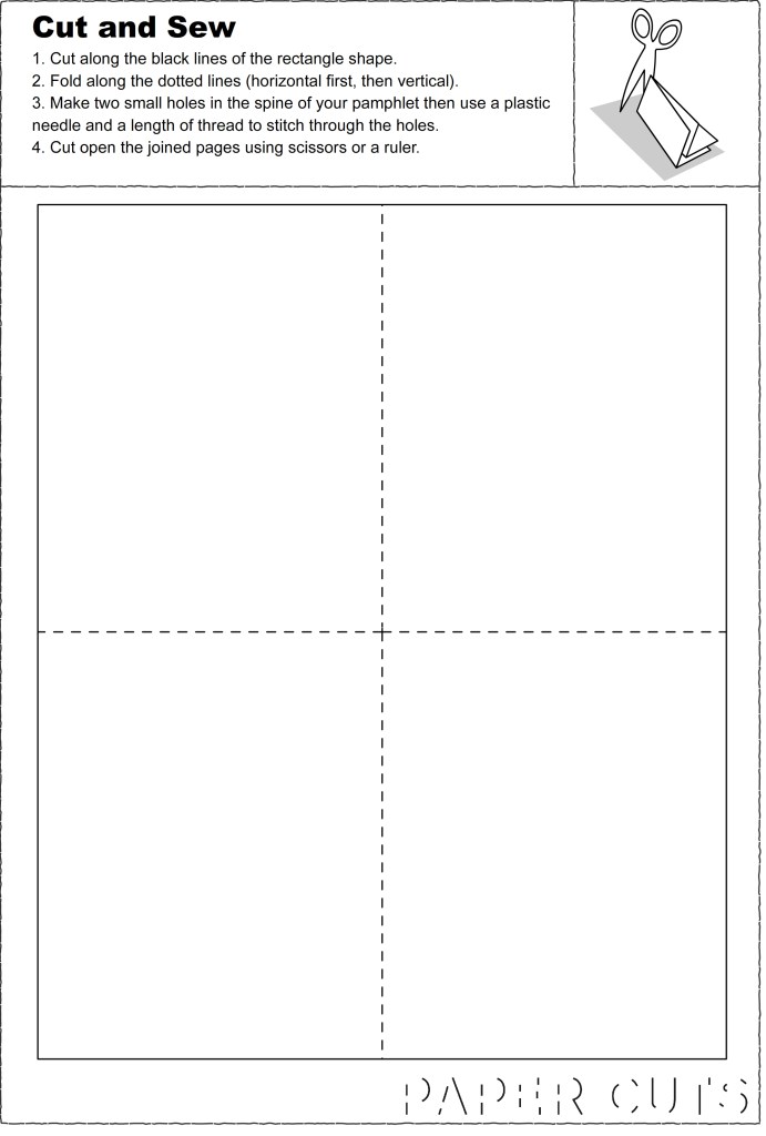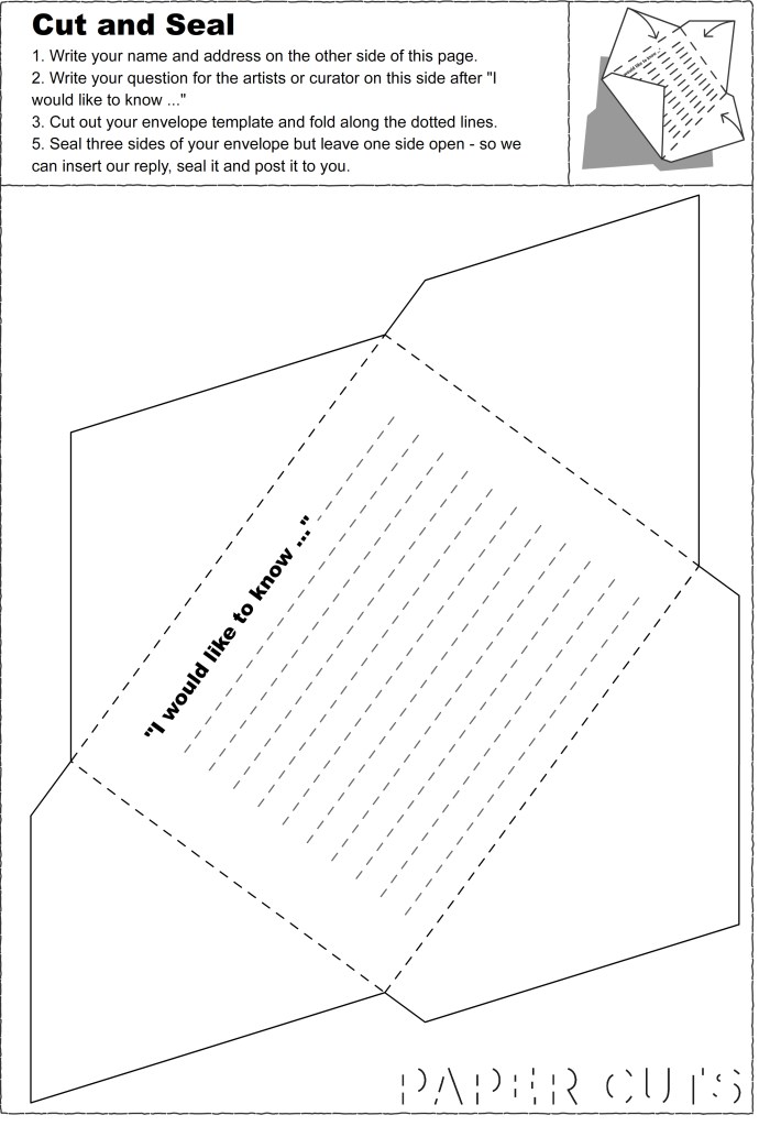 Designing interpretation resources for schools to use to accompany Paper Cuts contemporary art exhibition at Bury St Edmunds Art Gallery. Paper Cuts featured the work of eight UK and international artists using paper as their medium. Resources included six A4 activities connecting to how the artworks were made and their themes, and involved cutting, scoring, folding and pinning.