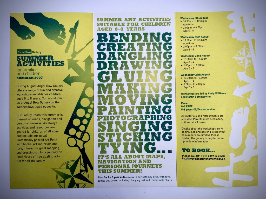Free creative space, resources and activities for families to enjoy at Angel Row Gallery alongside the contemporary art exhibition, themed around maps, navigation and personal journeys.